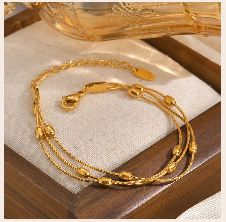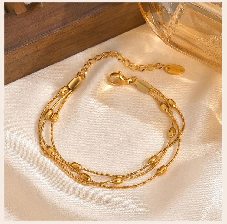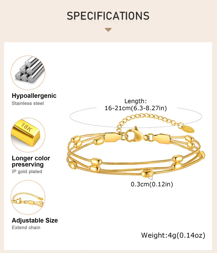 Unique: Multilayer Round Beaded Snake Chain Bracelet