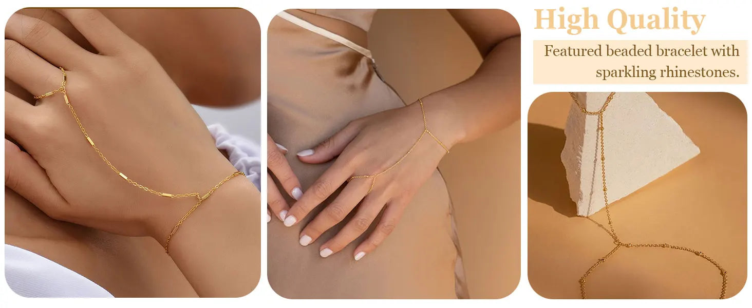 Adjustable Hand Chain: Whether you're soaking up the sun on a summer vacation, dancing the night away at a party, or attending a glamorous wedding, this ring bracelet hand chain is the perfect accessory for any occasion.