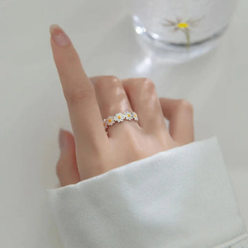 Daisy Flowers Exquisite Enamel Sunflower Open Rings